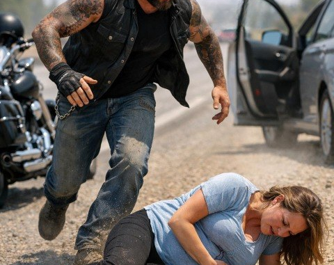 For nearly thirty minutes, drivers had seen a man pulled over on the shoulder. Dylan Cross, broad-shouldered and weathered, sat astride his old charcoal Harley-Davidson, letting it cool after overheating on the hill. Sunbeat shimmered off the asphalt, heat rising in waves. Nobody knew him, and nobody slowed down—just glanced, judged, and kept going.