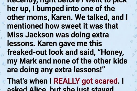 Then came Karen’s comment one Tuesday afternoon outside the school: “Your daughter stays after class?” she asked suspiciously. I explained that Miss Jackson offered extra lessons. Karen looked at me like I’d grown a third eye. That night, I asked Alice casually, but she clammed up. Silence where usually there’s chatter is never a good sign with her.