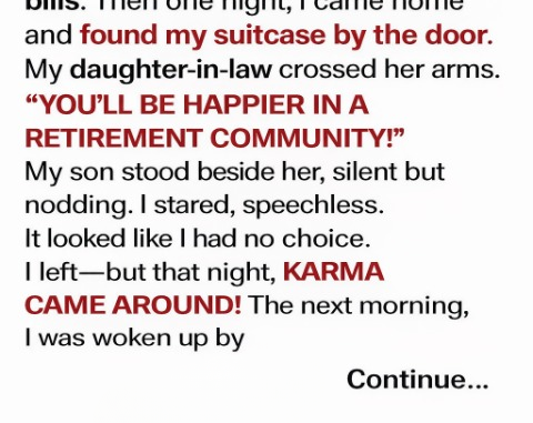At first, I tried to be patient—moving to the guest room, cooking, cleaning, helping financially. But slowly, respect vanished. Claire claimed my favorite spaces as her own, and Ethan avoided me. Then, one afternoon, I found my suitcase by the door: they were ready to push me out.