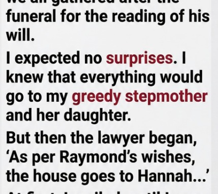 At the attorney’s office for the reading of the will, I braced myself. I assumed Darlene and Sabrina would take everything. But then the lawyer, Mr. Hastings, read the words that made my heart leap: the house was left to me—Hannah.