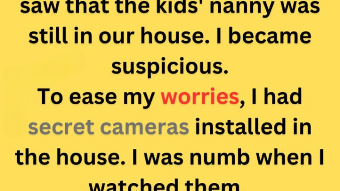 As a corporate events planner, the woman often returned home after midnight, assuming the nanny had left once the children were asleep. One night, she found the nanny still in the house, claiming she had been watching a movie with her husband. Further concerns arose when her daughter revealed that the husband and nanny frequently had loud conversations on Saturdays.