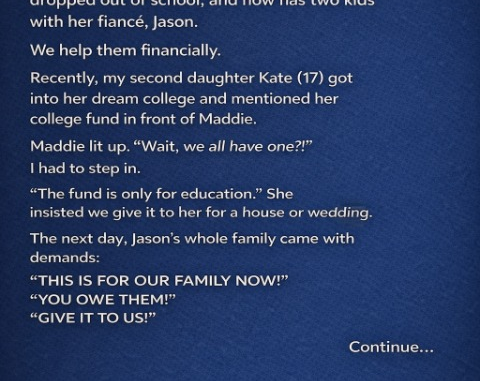 Long before this, Tom and I had quietly saved for all four of our children’s futures. Each had a college fund, including Maddie’s. It was never meant as leverage or a reward—it was simply reserved for education.