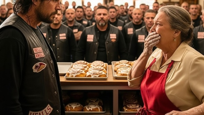 Twenty-one years later, in 2024, Ellie—now seventy-four—was contemplating retirement and struggling to keep the diner afloat. One Saturday, the town streets shook with the roar of ninety-seven motorcycles. At their center was Ryan, now a grown man, surrounded by his motorcycle community. He rode not just for himself, but for the woman who had once fed him.