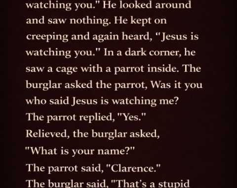 “Clarence?” the burglar chuckled. “Who names a parrot Clarence?”
