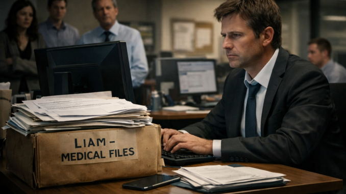 The next morning, he arrived at work on time, dressed as usual. But under his arm was a thick folder stuffed with hospital reports, therapy plans, and medical documentation. He carried the physical evidence of his “personal life” into the office, placing it beside his computer as a silent statement.