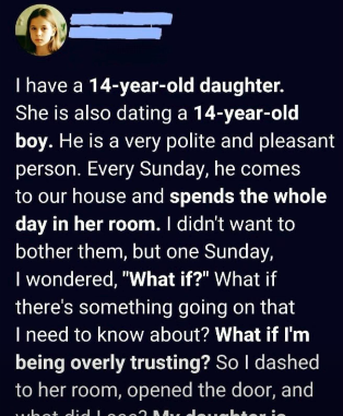 Every Sunday, like clockwork, he comes over after lunch and stays until dinner. They head straight to her room, door closed, and keep things quietly to themselves.