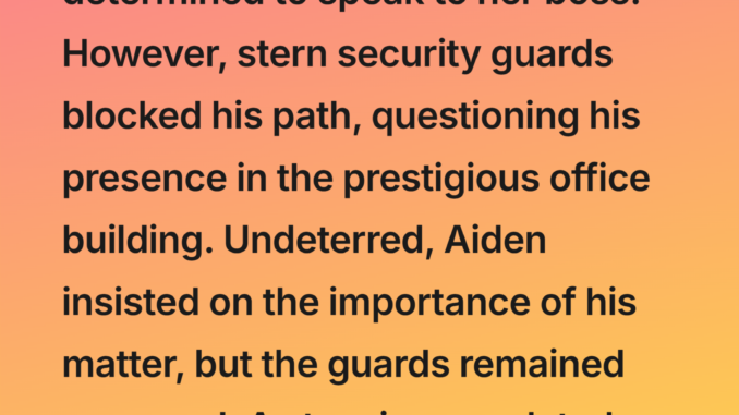 The guards exchanged uneasy glances. Children rarely demanded meetings with the head of one of the city’s largest companies. They tried to turn him away, but Aiden refused. His urgency was clear; whatever message he carried mattered more than their warnings.