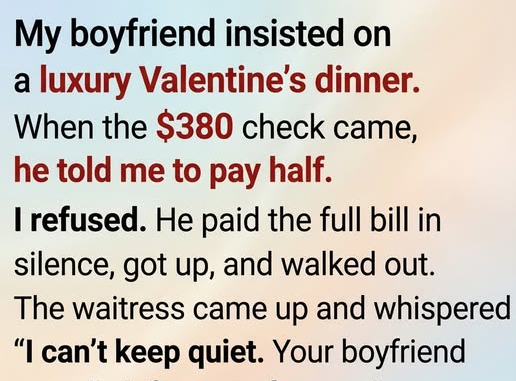 Valentine’s Day had always been special to me, even in quiet, simple ways. That year, my boyfriend surprised me with dinner at one of the city’s most elegant restaurants. The atmosphere was enchanting—soft music, flickering candlelight, and a sense of calm intimacy. We laughed, shared stories, and enjoyed the rare luxury of being fully present with each other.