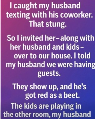 When I discovered my husband messaging a coworker, the feeling of hurt lingered with me for days. Instead of reacting in anger, I chose a different approach. I invited her to dinner at our house—along with her husband and their children. The moment I told my husband we would be hosting them, his face instantly turned pale.