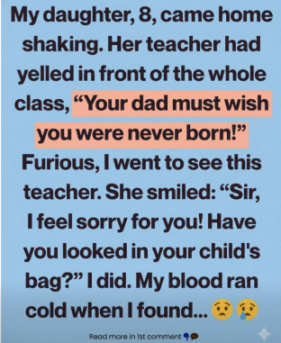 The drive home felt impossibly long. That night, after dinner and homework, I quietly opened my daughter’s bag—and my stomach sank.