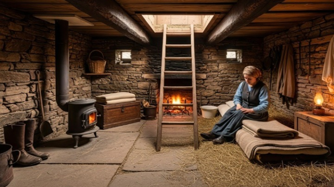 The short distance from house to barn turned into a life-or-death struggle. Snow reached past her thighs, and the wind struck her chest like relentless blows. Relying on instinct and memory, she reached the barn, her fingers numb, her face stinging from frostbite. Inside, the livestock clustered together, their breath misting in the freezing air. She cleared the hay from the barn floor, opened the trapdoor, and descended into her hidden room, shutting the door behind her. Instantly, the world went silent.