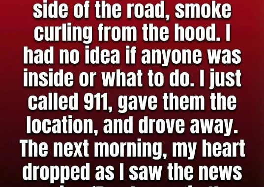 But uncertainty held me back. I couldn’t tell if anyone was inside, and the stillness around the vehicle made it feel distant, almost unreal. Instead, I did what seemed safe at the time: I called emergency services, gave them the location, waited just long enough to hear that help was on the way, and then drove off. The rest of the night passed quietly.