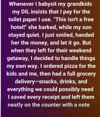 She never complained. Quietly, she paid, choosing peace over confrontation, telling herself it wasn’t worth creating tension for the sake of spending time with her grandchildren. Yet the discomfort stayed with her.