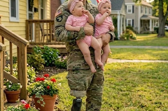 I had been counting the days for months, waiting for the moment I could finally return home after a long deployment. All I wanted was to walk through the front door and hold my newborn daughters for the first time. I carried their photo everywhere, memorizing their tiny faces and imagining the life that awaited us. There was one truth I kept hidden—I had lost part of my leg in service and now used a prosthetic. I didn’t tell my wife, Mara, fearing it would add stress to her already challenging pregnancy. I thought I was protecting her. With gifts in hand and hope in my heart, I came home expecting joy—but reality had already shifted.