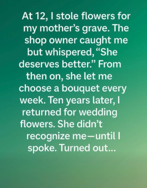 Years later, when I was planning my wedding, I returned to that same shop to choose my bouquet. At first, she didn’t recognize me, but when I reminded her, her eyes filled with tears.