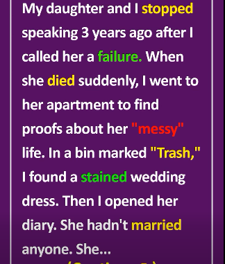 After years of estrangement, I went through my daughter’s belongings after her sudden death, looking for confirmation of my judgments about her life. Instead, I found a wedding dress and a diary. She hadn’t married secretly—she had given her dress to a bride who lost everything in a fire and spent weeks repairing it for free. Her final words reflected a choice to prioritize compassion over pride. I realized too late that I had been “right,” while she had been kind.