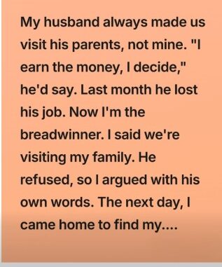 With the holidays approaching, I suggested we spend them with my parents for once. He refused immediately, as usual. That’s when I reminded him of the same rule he had always used—that the person earning more has the final say—and pointed out that, for now, that was me. He didn’t take it well.
