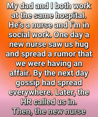 In the end, it became a learning moment for everyone. HR emphasized the importance of communication before jumping to conclusions, and coworkers became more thoughtful about their assumptions. As for my father and me, nothing really changed—we still share those same brief hugs after long days.