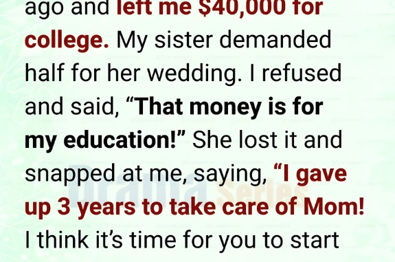 She didn’t waste time. “I want half of the money Mom left you. Weddings aren’t cheap, and I spent three years taking care of her. It’s only fair.”