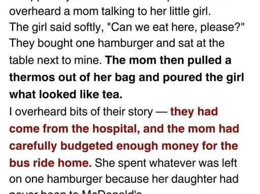 “Excuse me,” I said to the cashier, lowering my voice. “Could you add a Happy Meal to their order? The woman and the little girl. Please don’t tell them who it’s from.”